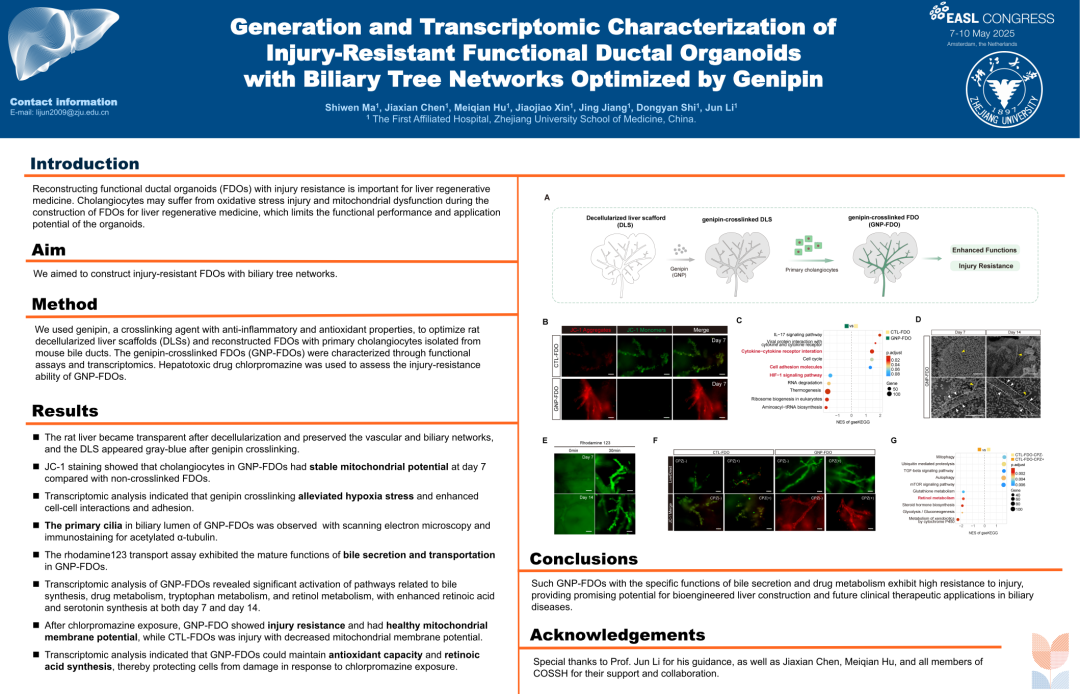 马诗雯硕士生:京尼平交联重建抗损伤性功能性胆管树及其转录组